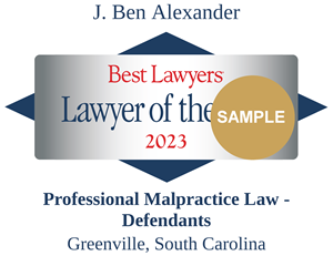 - Best Lawyers® Professional Malpractice Law - Defendants “Lawyer of the Year” Greenville (2019, 2023, 2025)
